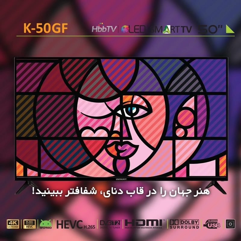 تلویزیون ال.ای.دی 50 اینچ دنای مدل K-50GFBH تلویزیونی هوشمند است که تراشهی موجود در آن، سرویسهای اینترنتی بسیاری را ارائه میدهد. درواقع شما میتوانید بسیاری از اموری که در کامپیوتر خود انجام میدهید را در صفحه نمایش بزرگتر و با کیفیتتر انجام دهید.